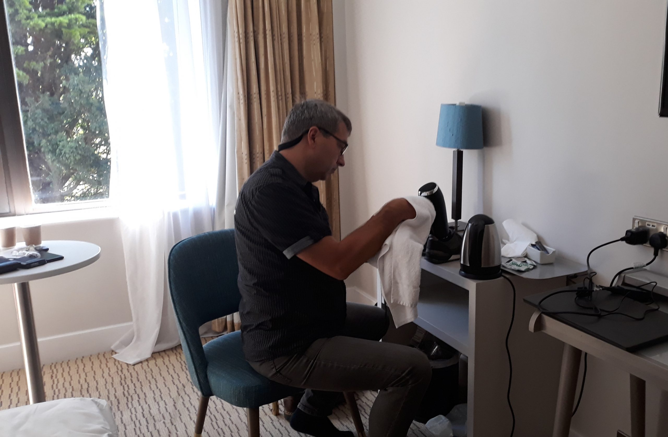 Инго сушит мои кроссовки после вчерашних походов 🙂Mercure Hull Grange Park Hotel, Hull.